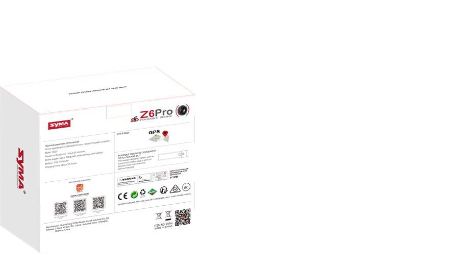 Квадрокоптер Syma Z6 с камерой 4K FPV, GPS 2.4G - SYMA-Z6 PRO c сумкой - это новый компактный складной квадрокоптер от Syma. Вес квадрокоптера всего 215 грамм. Регистрация не требуется.
