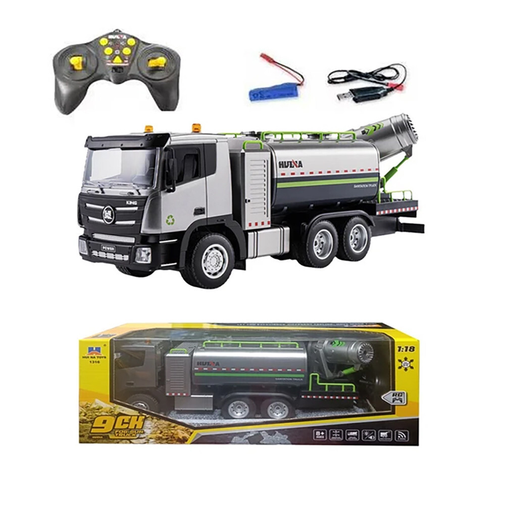 Радиоуправляемый грузовик Huina с цистерной и распылителем воды (свет, звук, пар, 1:18) - HN1316 - это необычная модель грузовика со световым распылителем пара. Маленькая копия настоящего самосвала, выглядит очень реалистично и обладает широким функционалом. Благодаря резиновым колесам, модель уверенно преодолевает неровности. Отличная игрушка для юных любителей спецтехники.